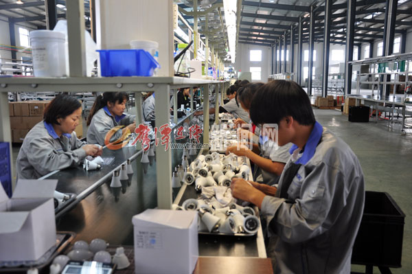 江西晶科電子公司成立才兩年,去年開始建廠房,今年才正式投產(chǎn)。時間雖短,但憑著科技創(chuàng)新和先進(jìn)市場營銷及管理模式,讓其一躍而成“后起之秀”,走上了篷勃發(fā)展的路子。晶科電子公司董事長張社喜介紹說:“公司設(shè)計(jì)為5000萬只全光角LED照明光源、5300萬只LED專用電源驅(qū)動、200萬套相關(guān)燈具和3億顆1W及以上功率的LED封裝產(chǎn)品及1.5億只微型變壓器的生產(chǎn)能力,產(chǎn)品市場定位則以外銷為主(60%)內(nèi)銷為輔(40%)。預(yù)計(jì)在2015年可實(shí)現(xiàn)5000萬元銷售額,目前產(chǎn)品全部外銷?!?/p>