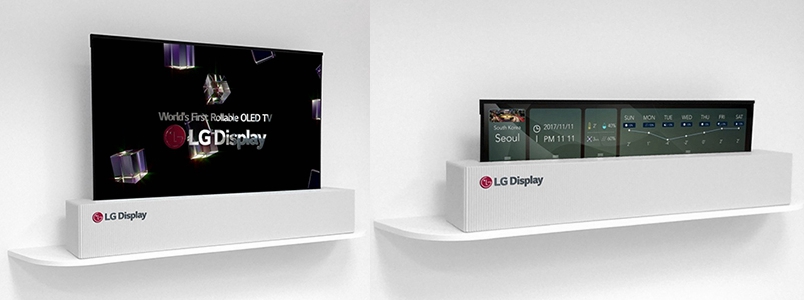 此次展會,LG Display將首次公開展示65英寸UHD可卷曲電視和55英寸透明顯示產(chǎn)品。這款柔性O(shè)LED電視可不是曲面那么簡單,而是具備可卷曲(rollable)特性,完全就像是紙張一樣。